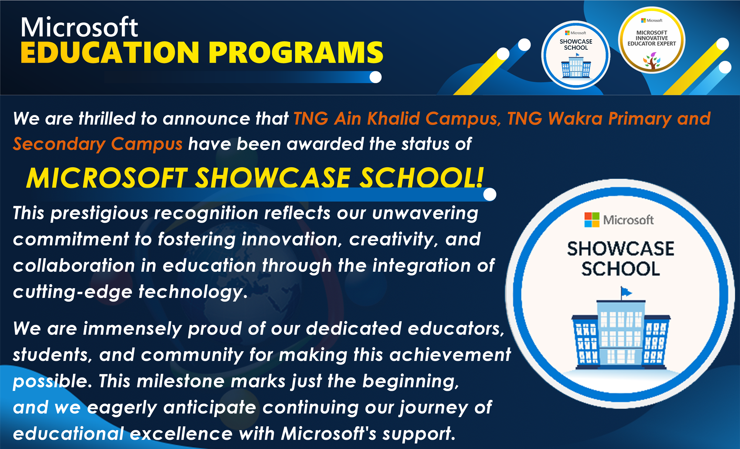 The Educational infrastructure of TNG is set up to fulfil the literacy demand of emerging Qatar, which includes Academics, Islamic Education, the Quran, Soft Skills and Technology.